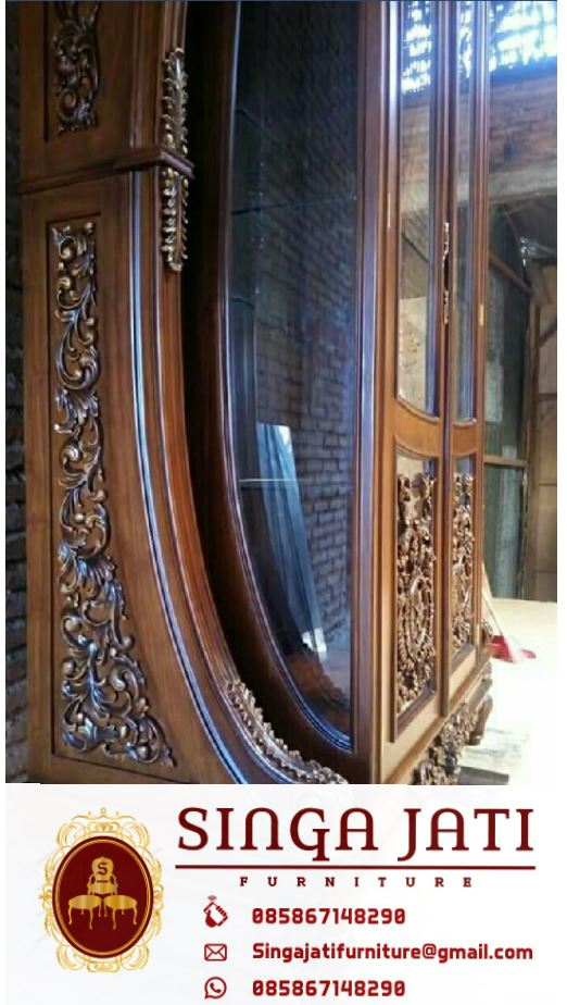 Almari kaca hias produksi singa jati furniture di proses oleh pengrajin asli jepara yang memiliki pengalaman den mempunyai dedikasi tinggi dalam bekerta, di setiap produk yang di proses sangat memperhatikan detailnya sehingga hasilnya rapi berkualitas dan memuaskan, lama pengerjaan almari kaca hias rafles ini tujuh sampai empat belas hari, dan untuk packing agar aman saat pengiriman barang kami memakai fom single face maupun double face, serta kardus, barang yang dikirim pun akan aman sampai ketujuan, jafi anda tidak perlu meragukan kualitas produk kami.