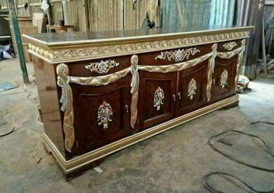 Bufet TV luxury minimalis ini sangat kokoh dan awet karena menggunakan bahan baku kayu jati TPK perhutani kering, bufet ini biasanya untuk menaruh TV tetapi bisa juga untuk menaruh barang barang kesayangan anda lainya, seperti vas bunga, foto keluarga, aquarium dan masih banyak lagi manfaatnya, ukiran khas jeparanya membuat buffet ini menarik dan di sempurnakan oleh cat finishingnya yang warnanya berbagai macam pada sati produk apalagi di kombinasikan cat marmer yang membuat bufet ini mewah, bufet TV luxury minimalis bisa di custom order lho…..