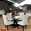 Dining Set Meja Makan Kaca Bulat Minimalis 4 Kursi Kayu Jati