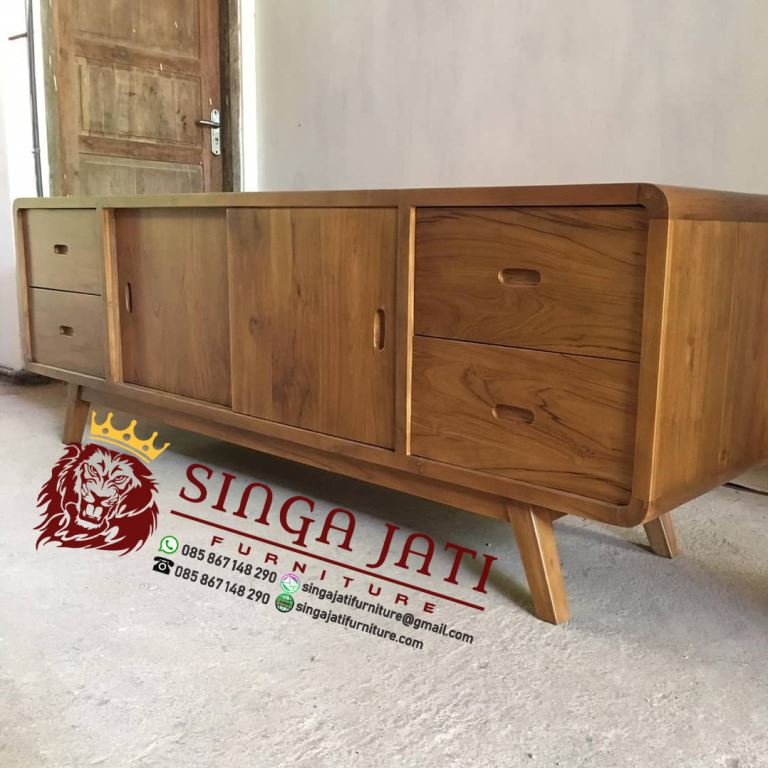 Bufet TV kini banyak diburu masyarakat. Selain sebagai tempat meletakkan TV, kini juga bisa digunakan sebagai dekorasi rumah. Terlebih lagi dengan bufet yang terbuat dari kayu jati.