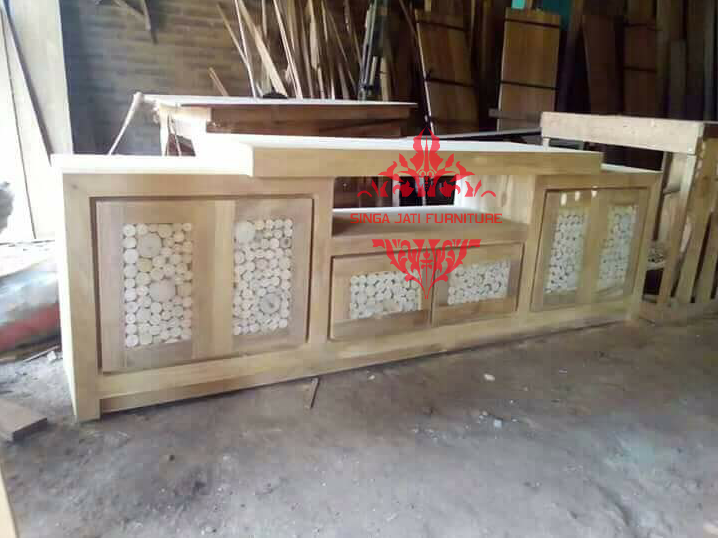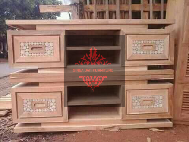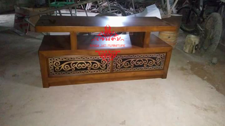 Meja TV minimalis ini memiliki konstruksi yang kuat dan kokoh tak hanya itu meja tv minimalis produksi kami juga tahan terhadap serangga pemakan kayu, karena produk kami dari bahan baku kayu jati TPK perhutani yang berstandart, yang benar benar kering dan jati yang sudah berumur.