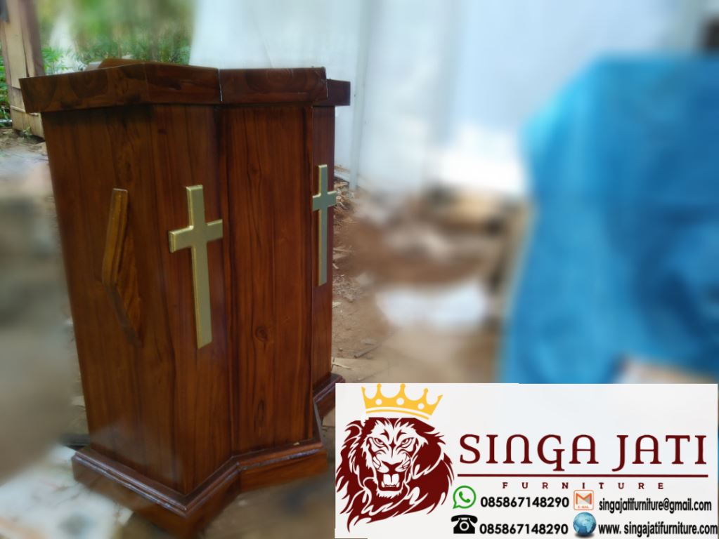 Spesifikasi mimbar gereja podium salib kayu jati