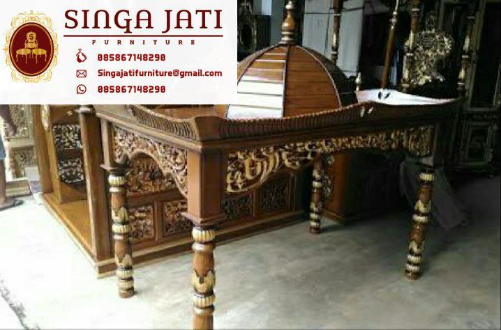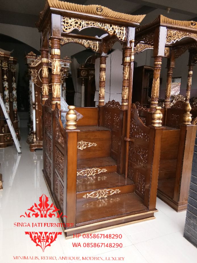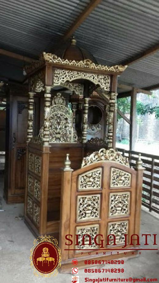 Mimbar masjid atap kubah di tempat kami di produksi memakai bahan baku kayu jati TPK perhutani, mimbar masjid yang di tempat kami memiliki beberapa keunggulan bila di bandingkan dengan para pesaing yang menjual produk mimbar serupa, salah satunya harga mimbar masjid atap kubah di toko kami murah jika di lihat dari kualitas yang akan anda dapatkan.