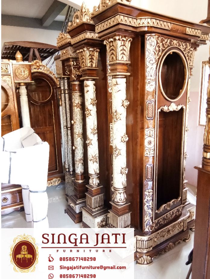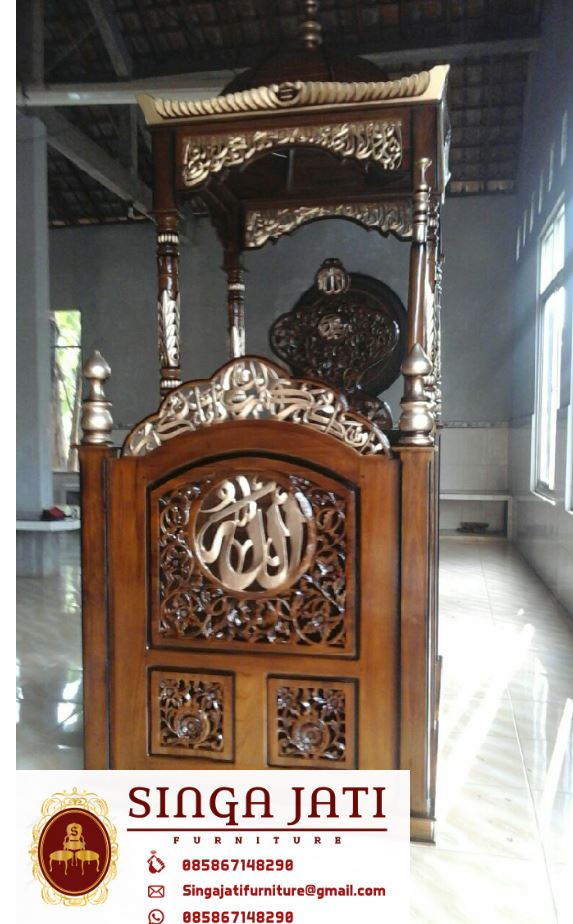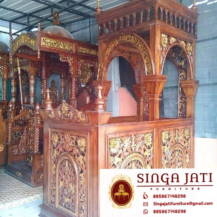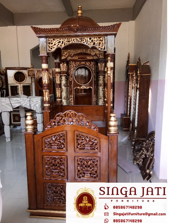 Satu set mimbar masjid jam hias ukir untuk masjid, mimbar masjid atap kubah serta jam hias ukiran kaligrafi atap kubah, adalah dua interior penting dalam masjid, khusus mimbar masjid suatu kewajiban bagi masjid memiiki mimbar, karena untuk berkhotbah pada setiap solat jum’at, sedangkan jam hias ukir bukanlah kewajiban bagi masjid untuk memliki tetapi hanya untuk pelengkap, semakin memperindah suatu masjid tentunya bermanfaat, https://singajatifurniturejepara.com/ menjual jam hias ukir untuk masjid dengan berbagai macam model begitupun dengan mimbar masjid, disini anda bisa memilih dan menentukan sendiri model sesuai dengan keinginan, untuk pembuatan satu set mimbar masjid dan jam hias menggunakan bahan baku kayu jati TPK yang berkualitas.