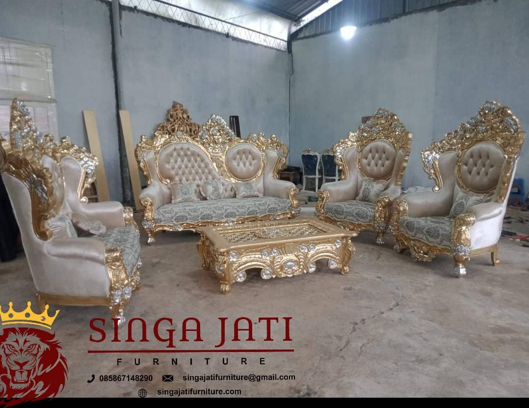 Sofa Ruang Tamu Sultan Ukir Jati Jepara Mewah Sofa ruang tamu sultan ukir jati Jepara mewah merupakan salah satu jenis furniture dengan detail yang indah dan elegan. Sofa ini bisa menjadi pilihan terbaik untuk menghiasi ruang tamu Anda. Sehingga tatanan interior yang terdapat di setiap sudutnya semakin rapi, hangat, dan mengesankan. Sofa Ruang Tamu Sultan… selengkapnya