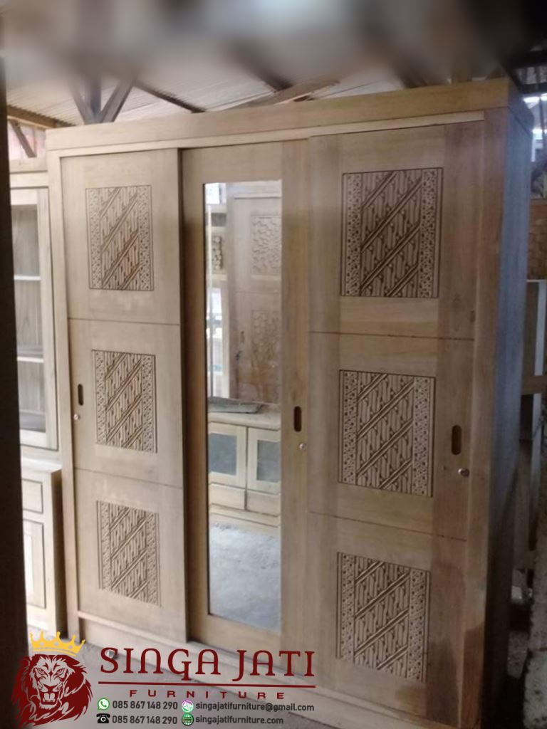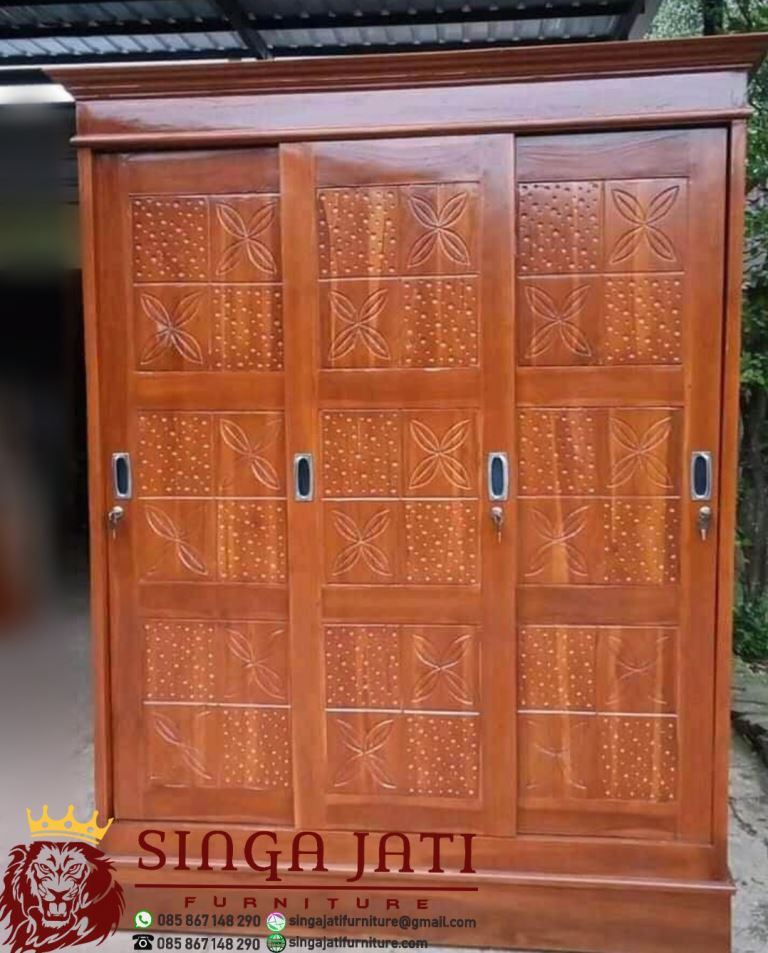 Lemari Pakaian 3 Pintu Sliding Kayu Jati Model Minimalis