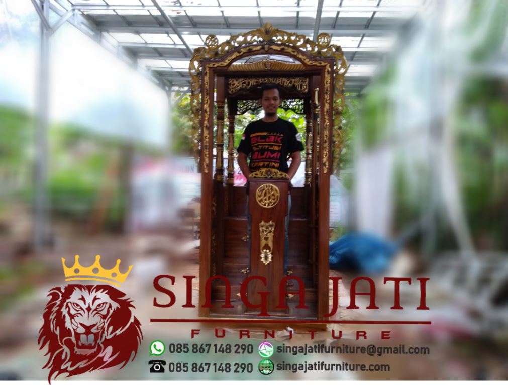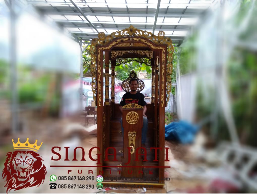 Mimbar Kaligrafi Ukir Jepara Atap Kubah Masjid Kayu Jati