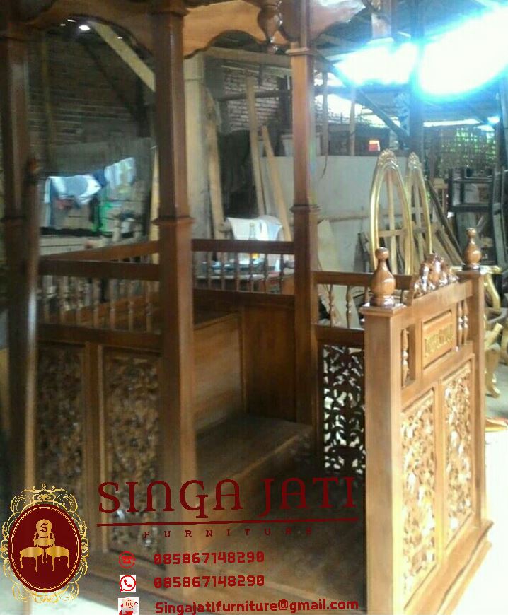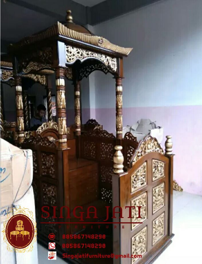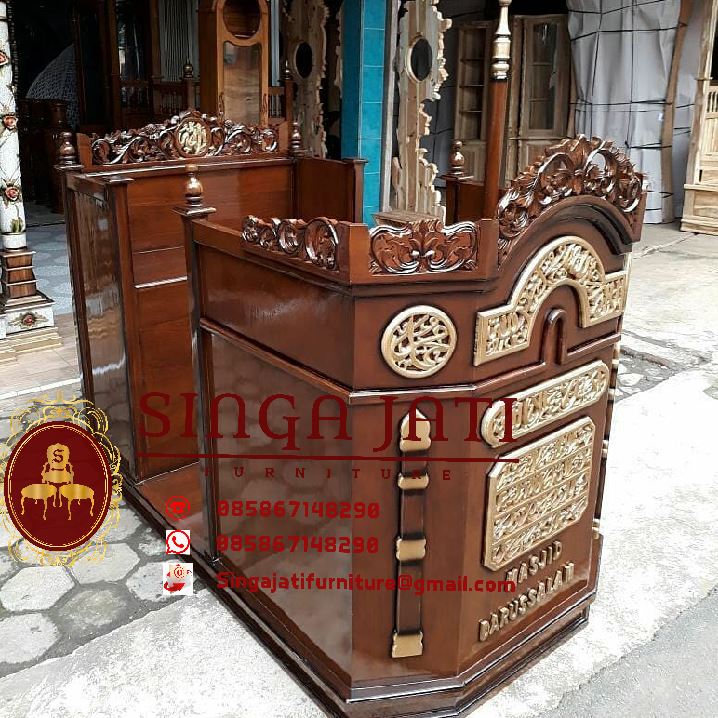 Mimbar masjid kami di proses oleh pengrajin yang pengalaman dan professional dalam bekerja, domisili kami di jepara jawa tengah untuk pengiriman mimbar kami menggunakan jasa ekspedisi, siap melayani pemesanan mimbar keseluruh kota di Indonesia, sudah banyak kami menerima orderan mimbar dari luar jawa, seperti sabang, aceh, medan, Palembang, binjai, Pontianak, samarinda bahkan makasar, alhamdulilah mimbar sampai dengan tidak ada lecet, dan pelanggan kami semua puas akan hasil mimbar produksi kami, untuk anda segera buktikan sendiri kualitas dari mimbar masjid kami.
