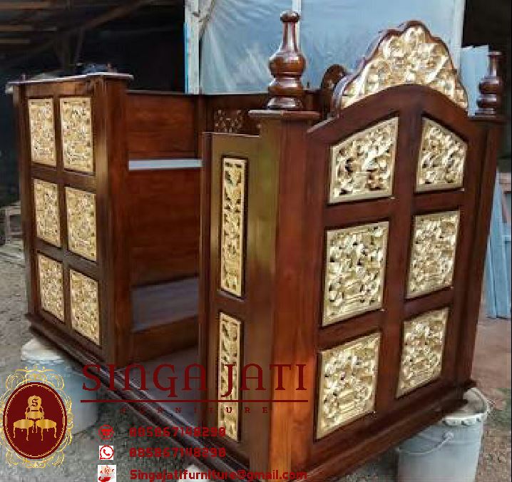 Mimbar masjid pintu samping kami rekomendasikan buat anda dengan beberapa keunggulan, salah satunya kami menggunakan bahan baku kayu jati TPK perhutani yang sudah tua, di tambah proses pengeringan kayu dengan cara di oven, sehingga kayu benar benar kering, tahan terhadap serangga pemakan kayu, konstruksinya di jamin kuat kokoh dan tahan lama, pengerjaan yang detail membuat hasil akhir mimbar masjid ini sangat rapi dan memuaskan, selain itu juga produk mimbar masjid pintu samping kami terdapat garansi selama 12 bulan yang akan menjamin dan sebagai rasa terima kasih kami terhadap anda yang sudah mempercayakan produk kami sekaligus pembuktian bahwa produk kami memang terbaik dibandingkan para kompetitor.