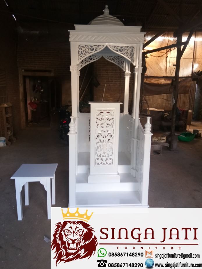 Mimbar Masjid Model Kubah Ukir Warna Putih Kayu Jati Kebumen