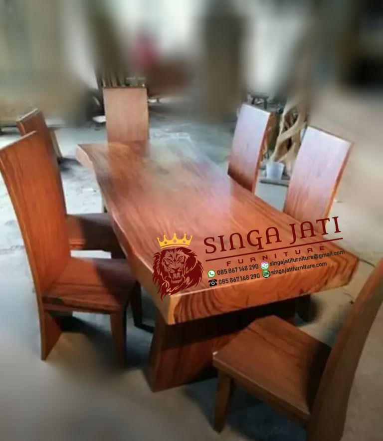 Model meja makan kayu trembesi utuh merupakan salah satu model meja makan yang didesain dengan desain modern terbaru. Sehingga akan membuat tampilan ruang makan anda semakin elegan. Meja trembesi tentu berbeda dari meja makan yang terbuat dari bahan kayu jati pada umumnya.
