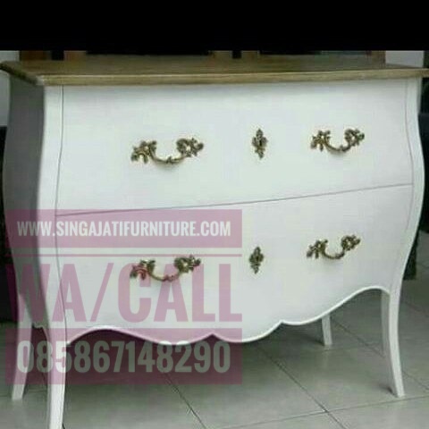Nakas 4 laci singa jati furniture, produksi singa jati furniture asli kami produksi dengan menggunakan bahan baku kayu jati terbaik, dan memiliki 4 laci, warna finishing putih susu menggunakan cat PU yang membuat nakas tersebut tahan lebih lama dan tetap mengkilap, bentuknya yang lucu semakin anda ingin memilikinya bukan.