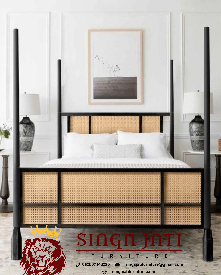 Tempat Tidur Kanopi Sandaran Rotan Modern Untuk Kamar Anda