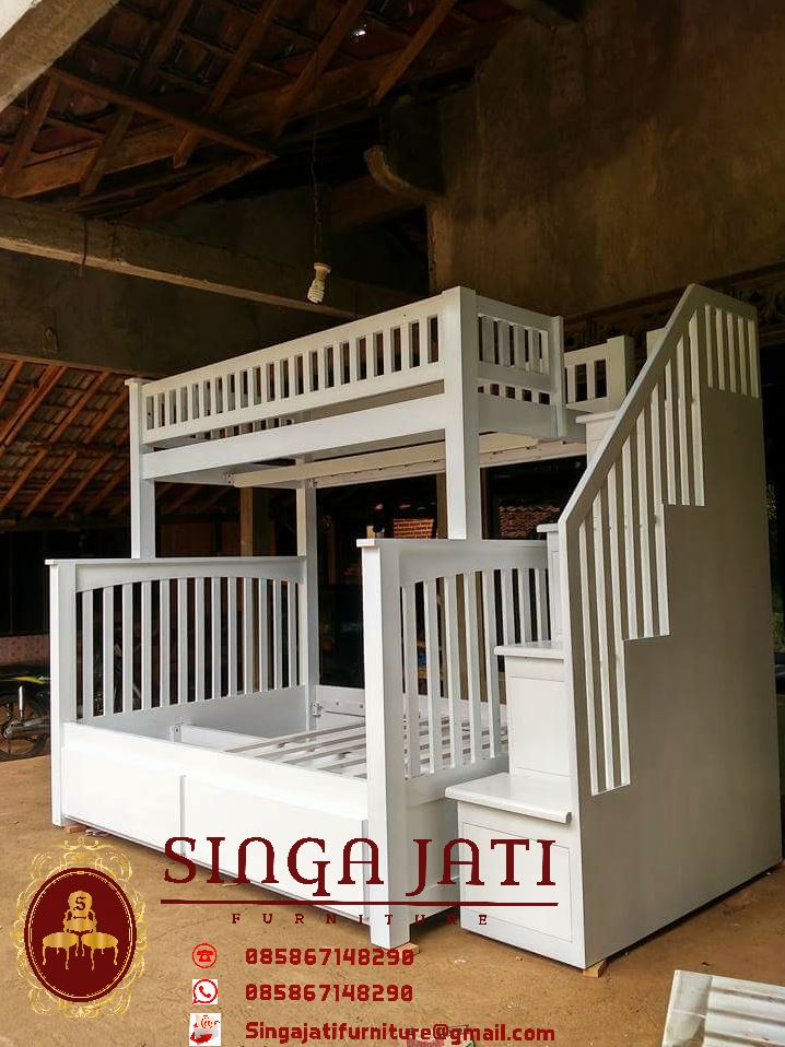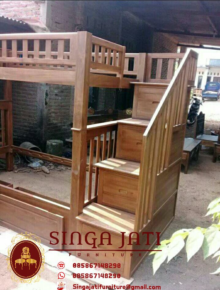 Tempat tidur tingkat anak produksi singa jati furniture sangat kami rekomendasikan untuk anda, dengan banyak keunggulan yang akan kami tawarkan, apalagi anda yang mempunyai putra maupun putri belum berani tidur sendiri, tempat tidur tingkat anak ini bisa menjadi salah satu solusi anda selain juga tempat tidur double bed,